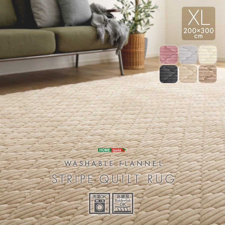 水洗い可能な、大人かわいいフランネルストライプラグ!可愛い見た目のキルトラグで、無地なのにファッショナブル!高密度な繊維が、ずっとさわっていたくなる手触り!こだわりの5層構造が、底付き感を軽減します!洗濯機で丸洗いOKなので、衛生面も心配ナシ!安心のノンホルム製法で、小さなお子様がいらっしゃるご家庭でも安心してお使いいただけます!裏面も、花柄タイプでずれにくく快適に過ごすことができます!