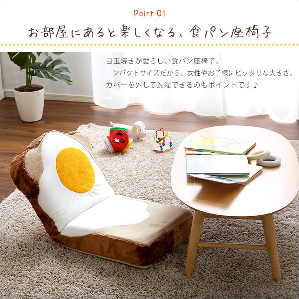 目玉焼き食パン座椅子(日本製)ふわふわのクッションで洗えるウォッシャプルカバー | Roti-ロティ-