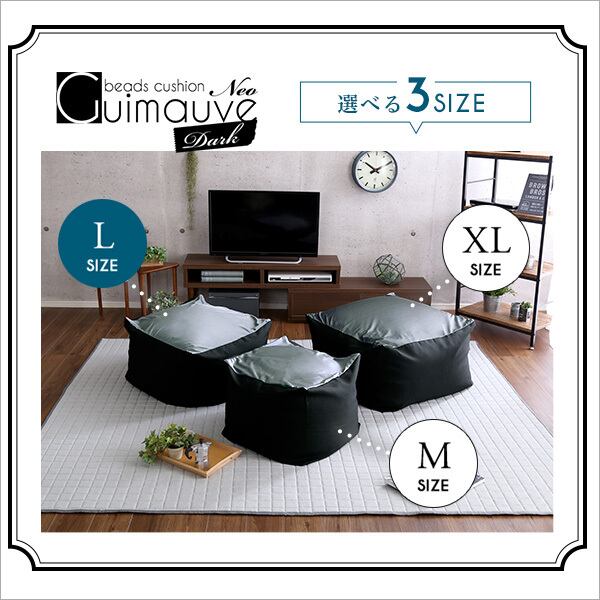 新配合でヘタリにくい キューブ型ビーズクッション ダークカラー |Guimauve Neo-ギモーブネオ- | ダークカラー Lサイズ