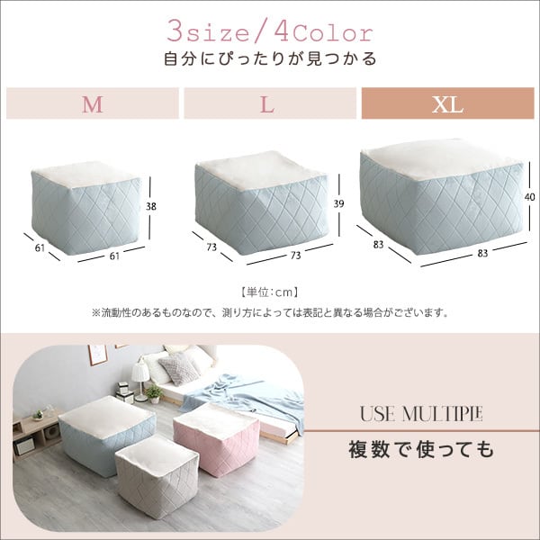 大人かわいいインテリア 四角ビーズクッション XLサイズ【Chammy -チャミー-】