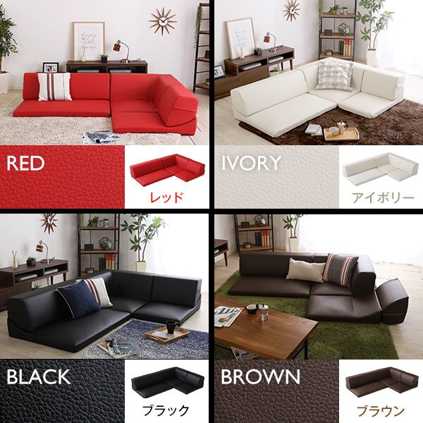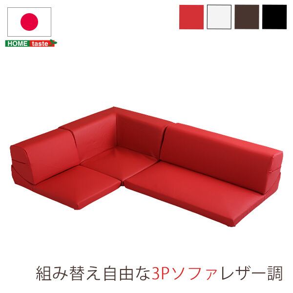ローコーナーソファ 【Lapageria-ラパゲリア-】 使い方自由自在 フロアソファ レザー調 くつろぎ コーナーソファ 3点 セット