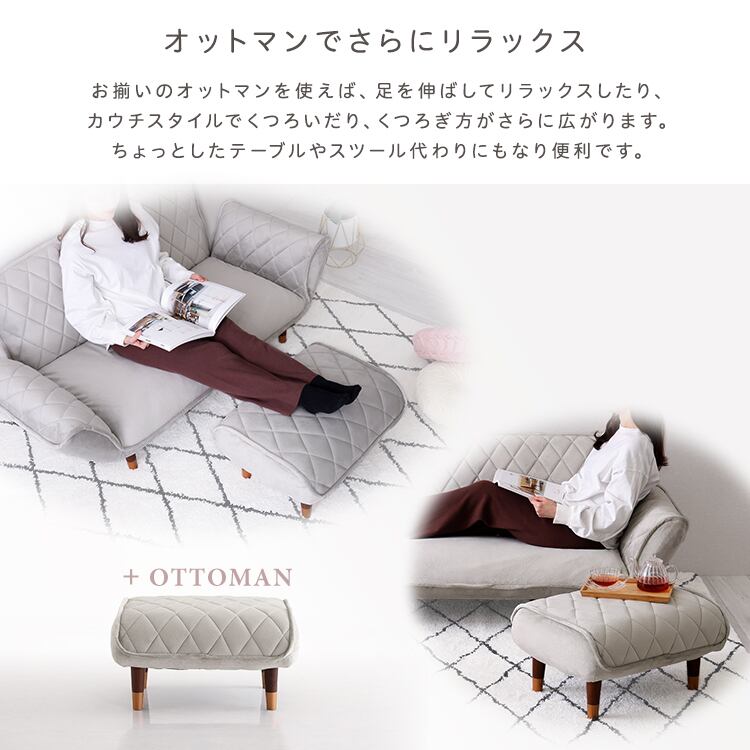 大人かわいい ダイヤモンドキルトカウチソファ オットマンセット 【Chammy -チャミー-】