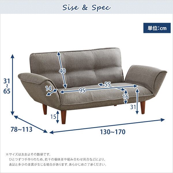 外寸:(約)幅130〜170x奥行き78〜113x高さ31〜65cm