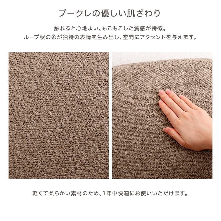 ふわふわ・モコモコした肌触りのブークレ生地を使用したソファです。