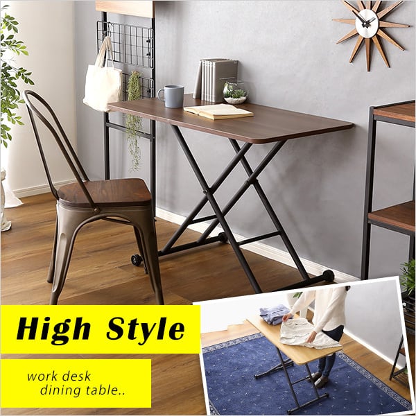 スタイルに合わせて調節可能な昇降テーブル。コンパクトに収納可能な折りたたみ式で収納場所に困りません。天板は幅100cmで広く使用可能でデスクワークにも最適!