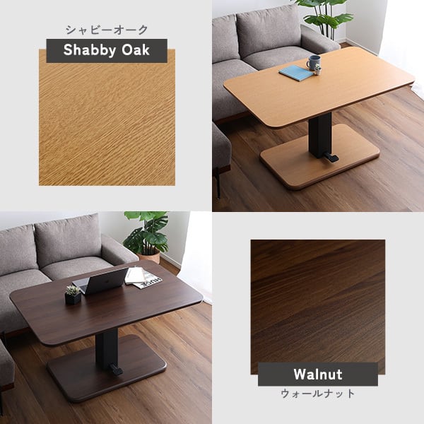 ペダルで調節可能な昇降テーブル。天板は幅119.5cmと広々ご使用いただけます!リビングテーブルとしても使え、来客時にも対応できます。